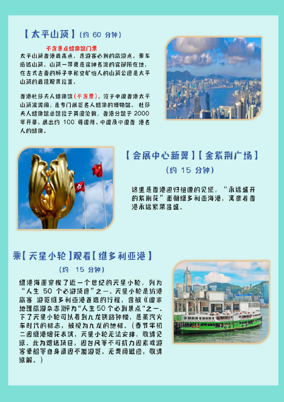 港澳观光三天 (香港观光+自由行+澳门) 送深圳