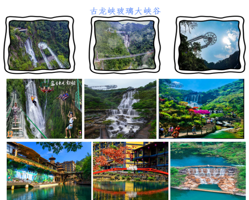 10:00-12:30【古龙峡玻璃大峡谷+古龙大瀑布】(停留2.5小时左右,旺季可能会出现排队情况)大瀑布又名古龙九瀑,顾名思义是由九段瀑布组成的浩大瀑布群,一瀑九曲,一曲一瀑,一折一潭,主瀑布为云龙大瀑布,犹如狂野的巨龙从天而降,气吞山河。逆溪而上,自下而上分布着双龙、天龙、藏龙、飞龙、见龙、猛龙、跃龙、云龙九级阶梯瀑布,或水帘悬挂、或银珠飞溅、或飞流直下。水帘洞天面积近百米,洞内雨意纷纷,洞外水花飞溅。奇特的蚂蚁城堡、散落在水岸的恐龙桫椤,放养在河谷的巨型鱼类,令人目不暇接。穿越雨林部落,探秘水帘洞穴,来到碧绿深幽的潜龙潭,可以零距离体验主瀑布云龙大瀑布扑面而来的震撼。有诗云:“云崖飞流瀑千尺,峭壁撑天挂九龙。”古龙九瀑是进入创造四项世界纪录的古龙峡玻璃大峡谷的首站景点,既是踏青、避暑、养生的绝佳游览去处,又是溯溪、沐瀑、戏水的森林探险王国。古龙峡玻璃大峡谷:又名云天玻霸,是世界首个集玻璃平台、玻璃栈道、玻璃索桥为一体的高空观光玻璃组合,同时融入了5D破裂效果、玻璃悬廊、玻璃台阶、凌空微步等高空挑战产品。玻璃峡谷位于万丈崖大瀑布的顶端,目之所及,悬崖峭壁、飞瀑擎天。玻璃峡谷采用3层1.5厘米的超级透明玻璃,是目前世界上最厚的栈道玻璃,超白玻璃透光率99.15%。古龙峡玻璃大峡谷的高空玻璃项目已经通过国家权威机构:浙江大学土木工程系的测试检验,将问鼎世界最长、最宽、最大的空中观光新霸主。