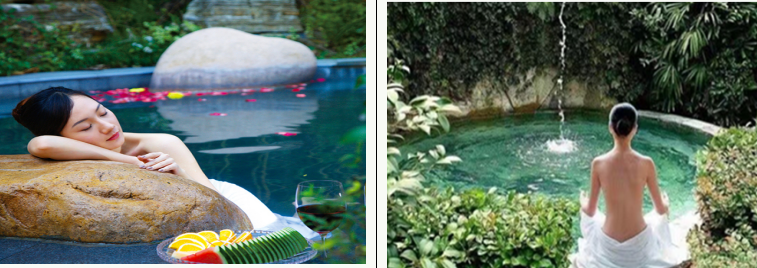 选择适应自身的高、中、低温度的温泉池,一般从低温到高温,每次不宜超过15分钟。