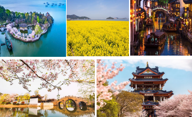 赏花踏青:鼋头渚世界赏樱胜地+太湖稻城油菜花海+太子湾品百亩郁金香;